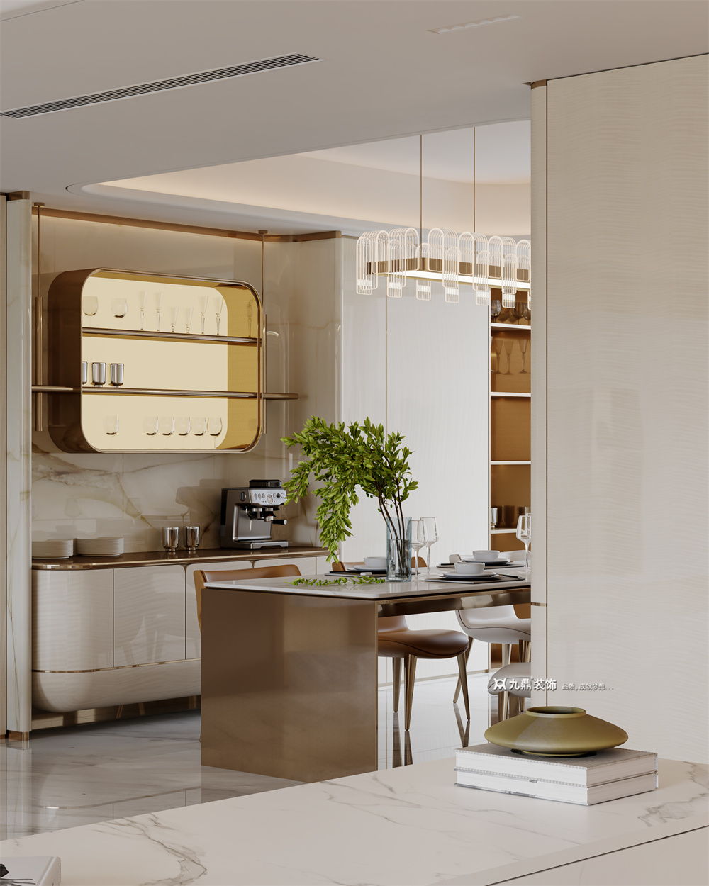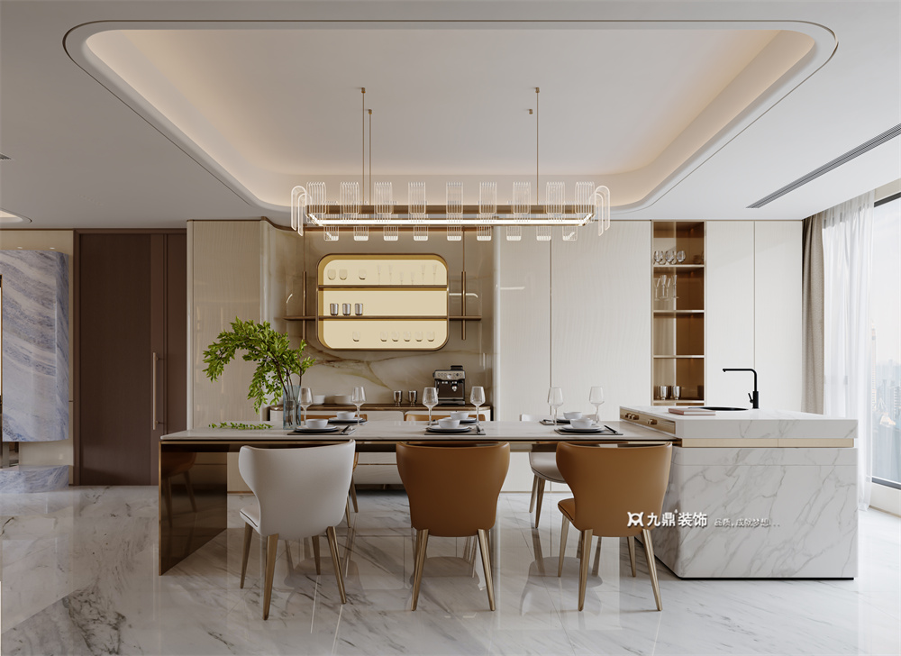 以简约线条勾勒空间,融入意式优雅与轻奢质感。天然石材、金属饰面与暖调木饰面交织,搭配低饱和色系,营造高级而舒适的氛围。开放式布局增强通透感,细节处点缀黄铜元素,彰显低调奢华。